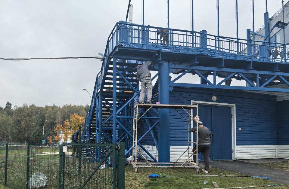 Выходим на финишную прямую с покраской трибун. Готовимся к новому сезону уже сейчас. Касса для наших посетителей станет более доступной и удобной в обслуживании — готовиться новый проход к локации проката и обновленный модуль блок для кассы.